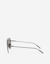 The iconic Dolce&Gabbana pilot shape realized in precious and ultra lightweight titanium. • Ultra lightweight and resistant grey matt titanium frame • Grey matt titanium temples • Mirrored grey titanium-plated lenses • 100% UV protection • Size lens - bridge - temple: 61 - 14 - 145 mm • Fitting: Adjustable nosepads • This item comes with a special packaging • Made in Japan