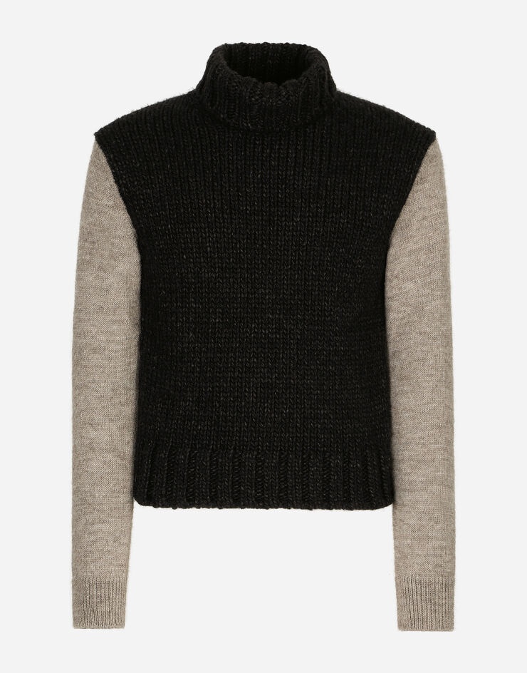 Two-tone wool and alpaca turtle-neck sweater