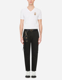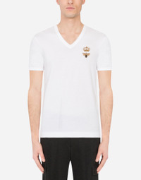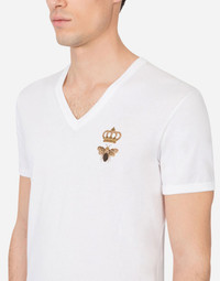 V-neck cotton t-shirt with bee and crown embroidery