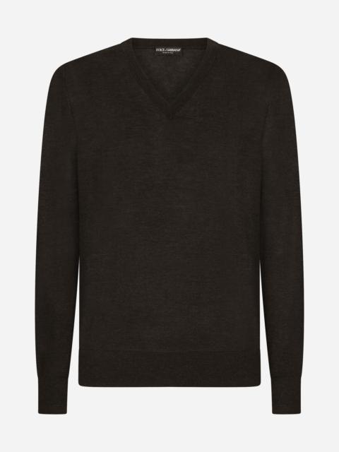 Luxury with a leisure aesthetic takes shape in the Dolce&Gabbana collections with exquisite fabrics and unique details, perfect for the man who wants to stand out on every occasion. V-neck sweater in cashmere. • Long sleeves • Ribbed cuffs, neckline and bottom hem • The bust measures 61 cm and wears an Italian size 48 • Made in Italy Composition: 100% Cashmere