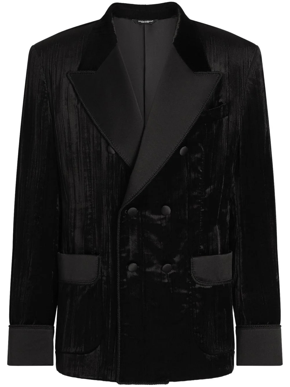 velvet blazer Highlights - Black - Double-breasted button fastening - Chest welt pocket - Two side flap pockets - Turn-up cuffs Made in Italy Composition Outer: Cotton 46%, Viscose 34%, Silk 15%, Polyester 4%, Spandex/Elastane 1% Lining: Silk 100% Washing instructions Read Manufacturer Guidelines
