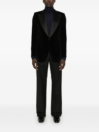 velvet blazer Highlights - Black - Cotton blend - Velvet - Front button fastening - Peak lapels - Shoulder pads - Long sleeves - Buttoned cuffs - Two front flap pockets - English rear vents - Multiple internal slip pockets - Full lining Made in Italy Composition Outer: Cotton 90%, Silk 8%, Polyester 2% Lining: Silk 100% SIZE & FIT Model measurements Height 6 ft 2 in(1.87 m) Bust/Chest 36.41 in(92.5 cm) Hips 37 in(94 cm) Waist 29.52 in(75 cm) FittingInformation Designed for a slim fit, offering a comfortable fit that sits just away from the body The vented hem offers movement at the rear Made from a midweight non-stretch fabric