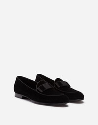 Velvet loafers with bow tie