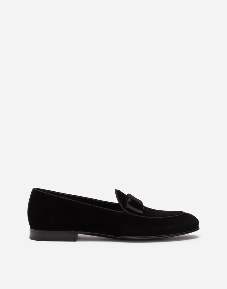 Dolce&Gabbana Men’s formal footwear stands out for its craftsmanship, the meticulous selection of leather and the attention to detail. Loafers from the New Lukas line in velvet with bow tie and grosgrain trim: • Velvet upper • Flat bow tie in grosgrain and velvet • Black calfskin insole with matelassé satin insert and logo on label • Leather sole with fresa bombé • Two-tone leather sole with embossed logo and micro-injected monogram • Blake Welt • Made in Italy Care And Details External composition: 64% Cotton 36% Rayon Internal composition: 88% Sheep Leather 8% Rayon 4% Silk
