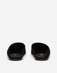 Velvet slippers with brooch embellishment