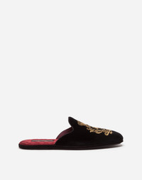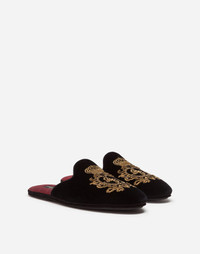 Velvet slippers with coat of arms embroidery