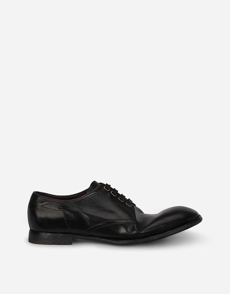 The “Layered DNA” collection introduces a new take on formalwear imbued with a contemporary feel, which highlights the craftsmanship and tailoring of the brand. These calfskin Michelangelo Derby shoes have been designed to complement the modern looks presented in the collection. The garment-dyed wash technique gives the upper a vintage look, making it soft and perfect for everyday use: • Blake construction • Vintage-look calfskin upper • Flat waxed laces • Leather-covered heel • Leather insole and branded label • Hand-painted resin leather sole • Made in Italy Care And Details External composition: 100% Calfskin