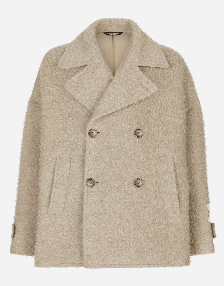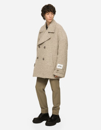 Double-breasted pea coat in vintage-look stretch cotton and wool with the Re-Edition label: • Beige • Regular fit • Mirrored lapels • Button fastenings • Outer welt pockets and inner welt pockets with button • Strap and buttons on the cuffs • Partially lined • The piece measures 78.5 cm from the rear collar seam on a size IT 48 • The model is 185 cm tall and wears a size IT 48 • Made in Italy Care And Details External composition: 56% Virgin Wool 42% Cotton 2% Spandex Internal composition: 100% Viscose