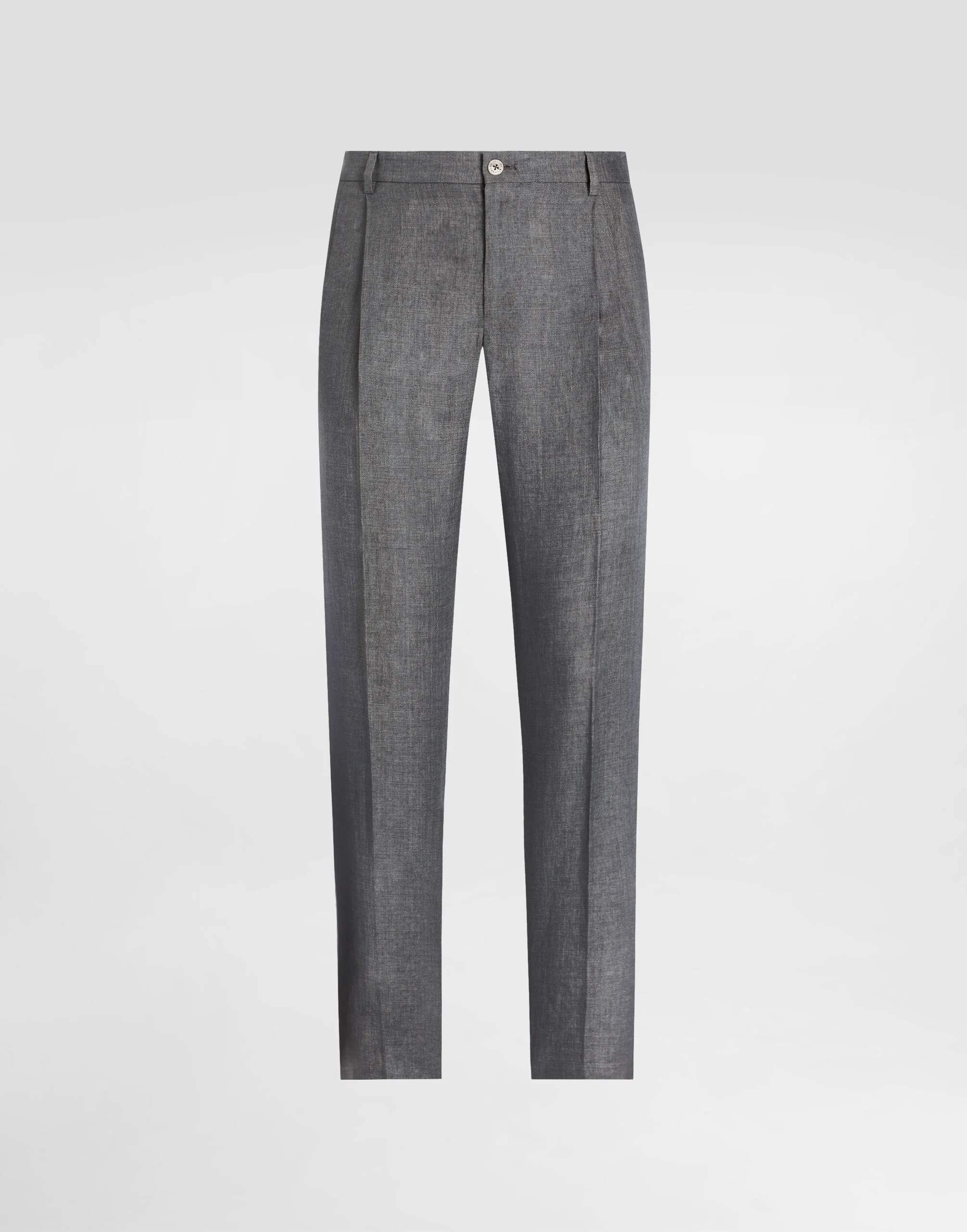 These classic linen trousers offer timeless elegance, perfect for a sophisticated and comfortable look. Ideal for any occasion that requires a touch of class. Washed linen trousers: • Grey • Classic fit • Fabric belt • Double pleats • Made in Italy • The model is 185 cm tall and wears a size 48 IT External Composition: 100% Linen