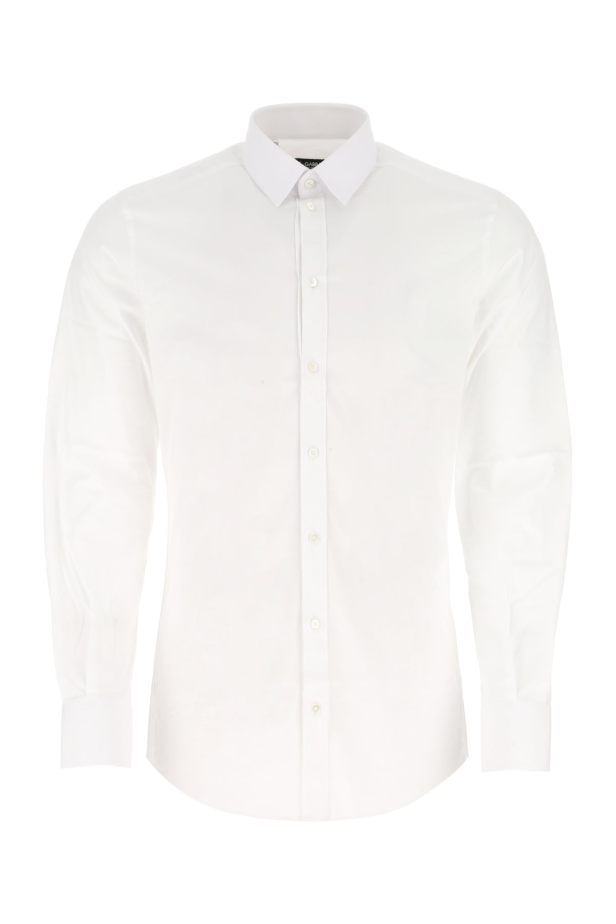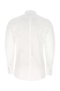 Shirt realized in stretch cotton poplin. - Short pointed collar - Buttons closure at the front - Angle-cut cuffs - Rounded hemline - Rear yoke and placket DETAILS White stretch poplin shirt Exterior: 97% Cotton 3% Elastane Made in Italy Made in italy Sample size: 39 Shoulders: 43 cm Chest: 50 cm Sleeves: 90 cm Total: 79 cm Collar: 41 cm Cuffs: 10 cm