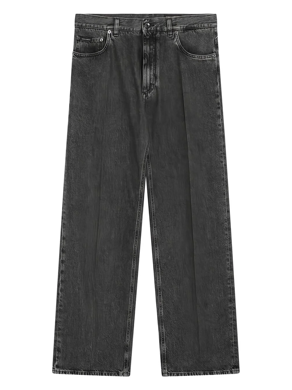wide-leg jeans Highlights - Black - Front button and zip fastening - Classic five pockets - Belt loops - Rear logo patch - Wide-leg Made in Italy Composition Cotton 100% Washing instructions Read Manufacturer Guidelines