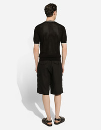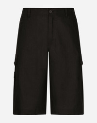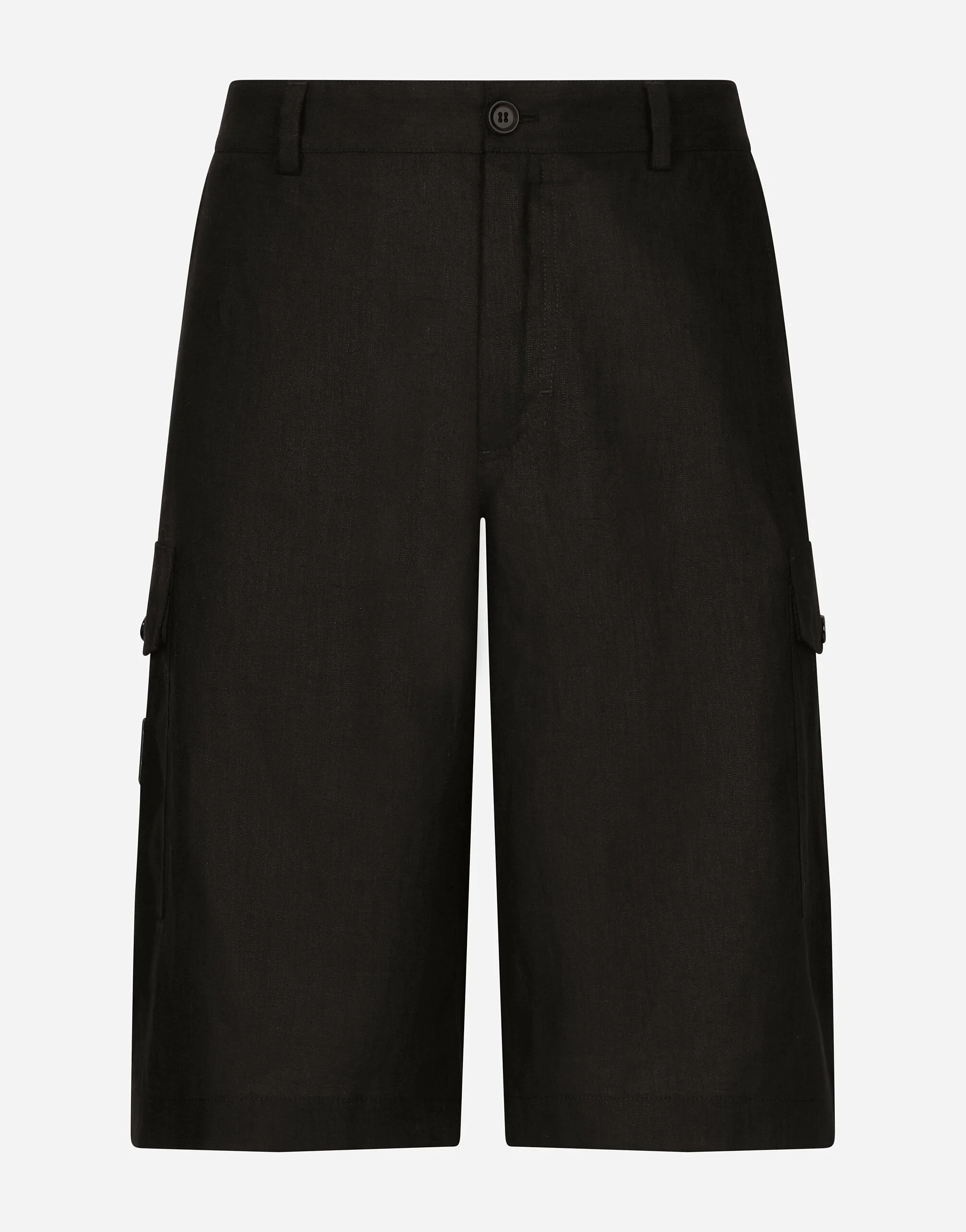 The Palermo collection represents the link between the Sicilian man’s world and the unspoiled nature of the island. A language marked by warm hues – sand, cream, Nero Sicilia black – floral paintings and iconic prints. The Dolce&Gabbana closet must-haves have been reworked in different materials, in pursuit of a new form of harmony. A collection rich in suggestion, such as the stripes inspired by the old mattresses of the 1940s and 1950s, and the timeless aesthetic of the looks. Linen cargo shorts: • Black • Regular fit • Belt loops on the waist • Fly-covered zipper and button fastening • Patch side pockets with flap and button • Front slant pockets and buttoned flap pockets on the back • The item measures 58.5 cm on the outer leg and the hem is 31.7 cm wide on a size IT 48 • Made in Italy External composition: 100% Linen Fiber