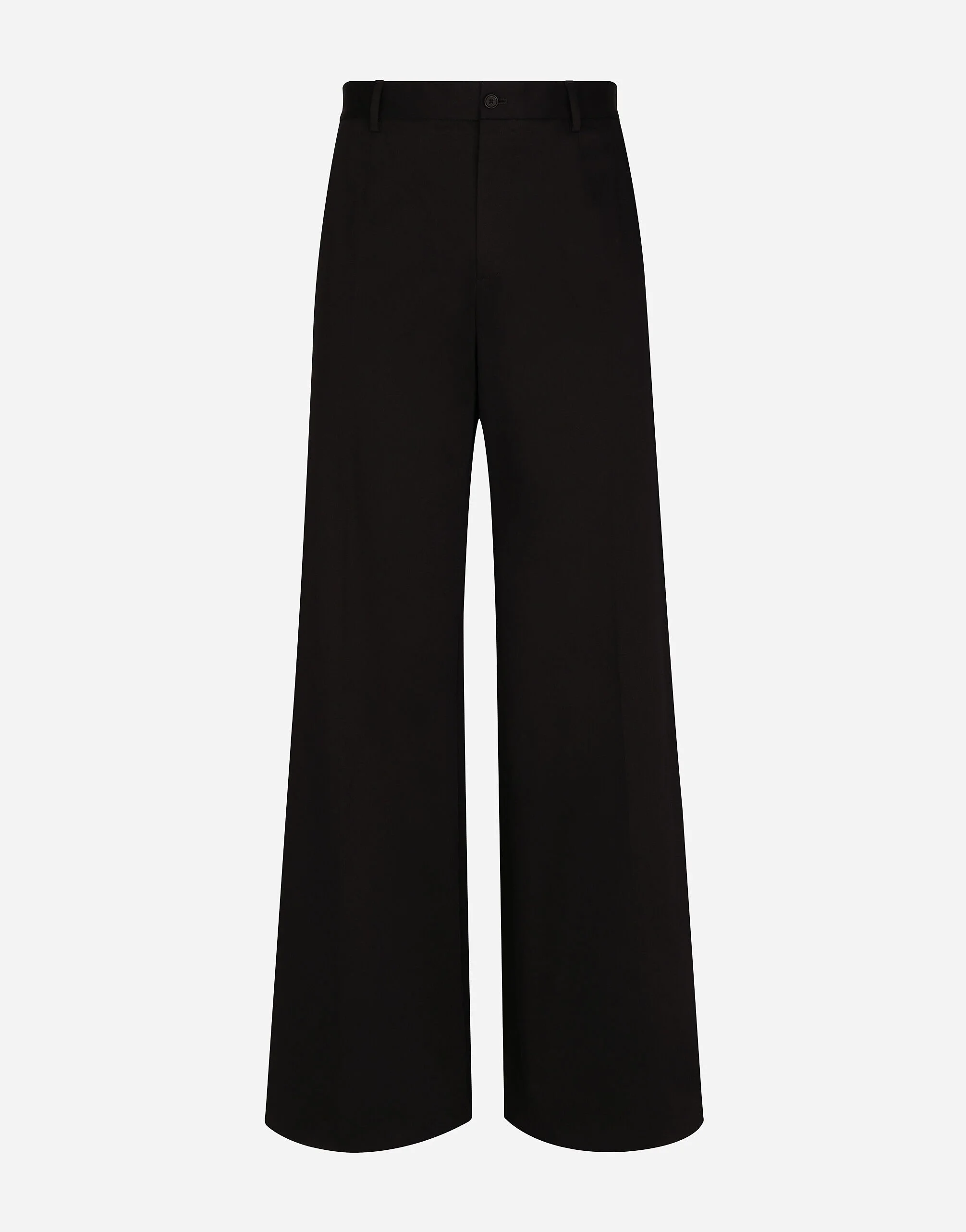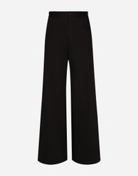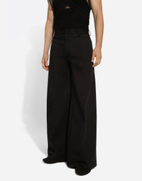 The SS24 “Stile” Collection recounts and clearly presents a strong concept: the unique and unmistakable style of Dolce&Gabbana. A word that is more than a statement. It is a concept! The designers work with surfaces, textures, layers and color nuances, as well as the sheen and fineness of the materials themselves, creating a “Stylish” collection. We’re going back to our roots with the desire to reaffirm the “Stile” - style -, flair and iconic DNA of the brand. Tailored wide-leg pants in stretch cotton: • Black • Regular fit • Belt loops on the waist • Fly-covered zipper and button fastening • Front slant pockets and buttoned welt pockets at the back • The item measures 120 cm on the outer leg and the hem is 40 cm wide on a size IT 48 • Made in Italy External composition: 98% Cotton 2% Spandex