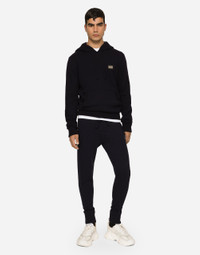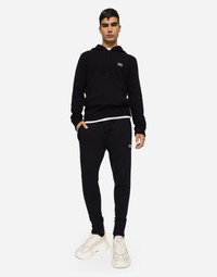 Jogging pants in a wool and cashmere knit with a metal tag featuring the Dolce&Gabbana logo: • Regular fit • Stretch waistband with drawstring • Front welt pockets and back welt pocket with zipper • Knit ankle cuffs • 12-gauge plain knit • The item measures 98 cm on the outer leg on a size IT 48 • The model is 185 cm tall and wears a size IT 48 • Made in Italy Care And Details External composition: 90% Virgin Wool 10% Cashmere