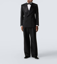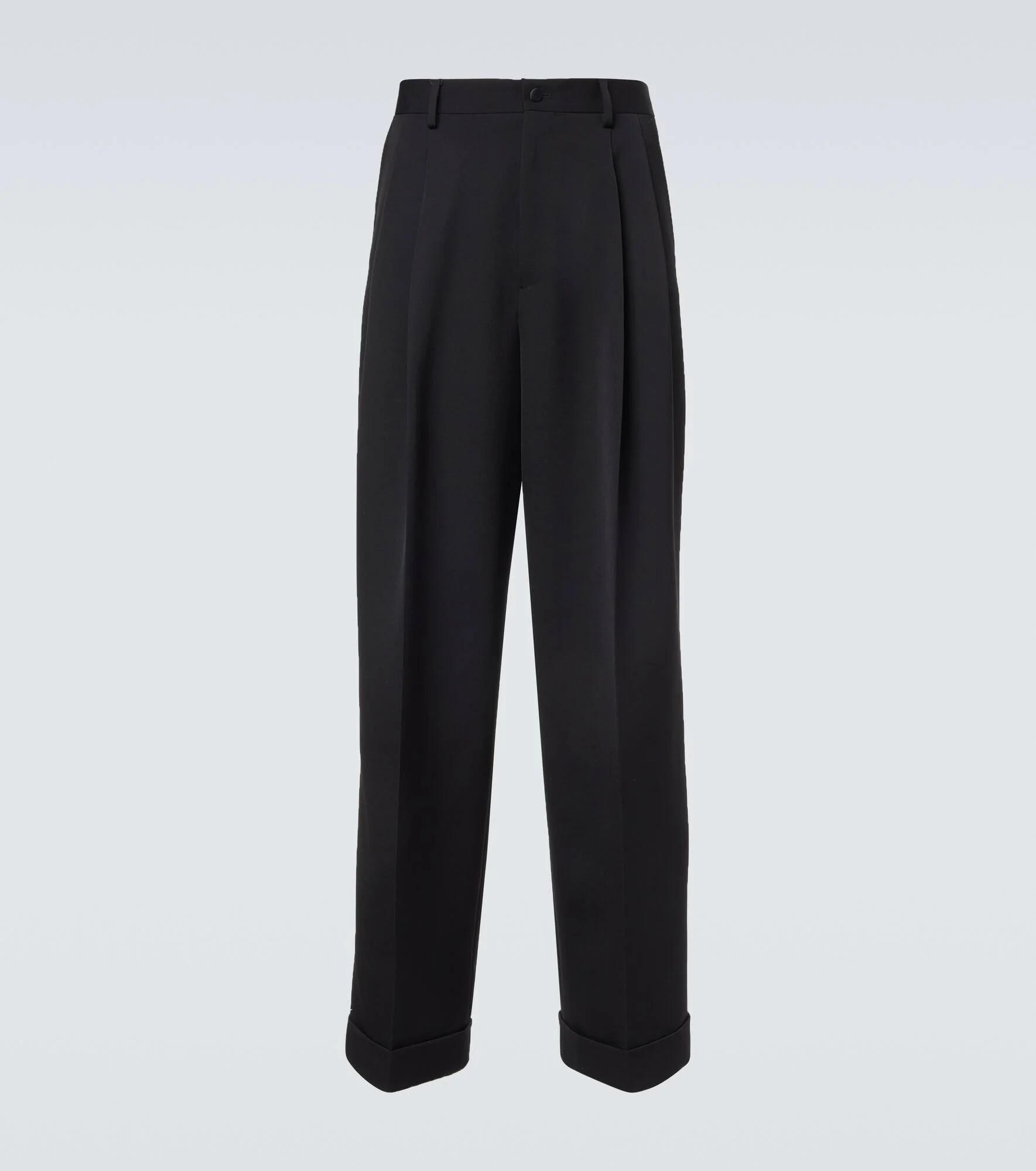 Dolce&Gabbana applies time-honored techniques to every tailored piece, blending traditional elegance with modern style. Crafted from wool and silk-blend gabardine, these suit pants are shaped into a fluid, wide-leg silhouette. Product Details - Material: 92% wool, 6% silk, 2% polyester - Care instructions: dry clean - Made in Italy - Designer color name: Black - Item color: black - Pockets: slant pockets, back pockets - Closure: zipper fly, button fastening - Belt loops - Hem: cuffed - Item number: P01049960 Size & Fit - True to size - Non-stretchy fabric - Wide-leg - Height of model is 189cm-74.5" and wears a size 50