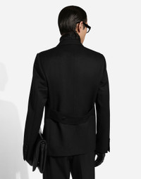 Contemporary men’s formalwear: The FW 24/25 Dolce&Gabbana Men’s Collection is embracing the concept of absolute elegance dominated by the iconic Nero Sicilia black. The daywear of the Dolce&Gabbana man comes to life through the outerwear that comes in a range of lengths and the slim-fit pants. For nightwear, the look becomes scintillating thanks to sequined embellishment and stone appliques. This refined taste can also be seen on the accessories, such as on the slip-ons with hand-applied organza flower accent and the new clutch. Double-breasted wool jacket: • Black • Regular fit • Peak lapels • Button fastenings on the front • Outer double-welt pockets, inner welt pockets and a welt breast pocket • Double-fabric half-belt on the back • Buttoned cuffs • Lined • The piece measures 70 cm from the rear collar seam on a size IT 48 • Made in Italy External composition: 100% Virgin Wool Internal Composition: 100% Silk