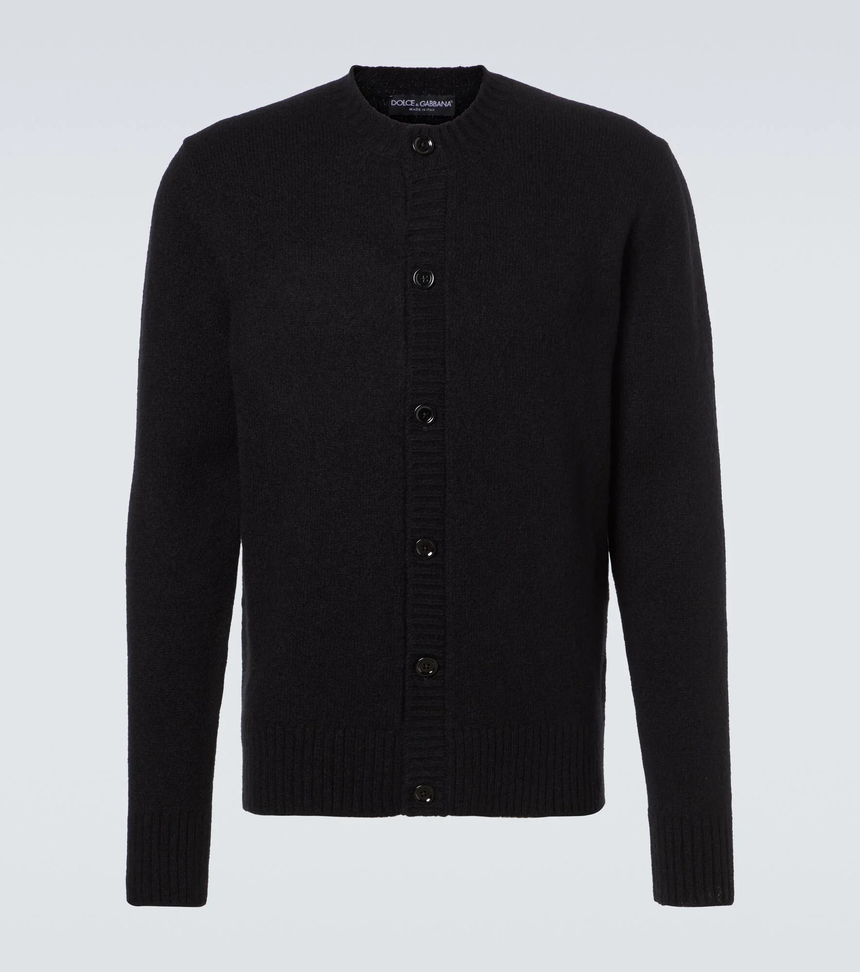 Embrace the change of seasons with this cozy cardigan from Dolce&Gabbana. Crafted in Italy from a soft wool blend, this design features a rounded neckline with buttoned front closure. Product Details - Material: 70% wool, 30% polyamide - Care instructions: dry clean - Made in Italy - Designer color name: Nero/Canna Fucile - Item color: black - Cuff: ribbed - Closure: buttoned front - Hem: ribbed - Item number: P01049962 Size & Fit - True to size - Straight fit - Slightly stretchy fabric - Falls to the hip - The model in the picture is 185cm-6'1" and wearing a size IT 50