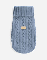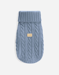The new line of dog apparel and accessories from Dolce&Gabbana combines luxury with love. Have fun dressing your loyal four-legged friend with our collars decorated with sparkling paws, elegant dog carriers and fashionable leashes featuring the iconic DG leopard print. Finish off your pet’s look with the bespoke harnesses, down jackets, chic T-shirts and warm sweaters. Wool dog sweater: • Light blue • The piece measures 25 cm from the rear collar seam on a size S • This piece features a 30-cm chest circumference in the size S • The piece measures 30 cm from the rear collar seam on a size M • This piece features a 38-cm chest circumference in the size M • Metal tag applique on the center back of the piece • Made in Italy