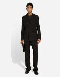 Tailoring means beauty, proportions, skilled cuts and sophisticated details. The FW 24-25 Sartoriale Collection builds on this solid foundation to define new ways of pairing colors, materials and textures. Sicilian rock gray envelops different textures, while Nero Sicilia black adorns textile and velvet weaves and camel pairs with orange. Various types of pinstripes, textured-effect cashmere, double fabrics, suede and denim meet in the looks. Tailored double-breasted wool jacket: • Gray • Regular Taormina fit • Peak lapels • Button fastenings on the front • Outer flap pockets and breast pocket, inner welt pockets • Buttoned cuffs • Central vent • Unlined • The piece measures 73.5 cm from the rear collar seam on a size IT 48 • Made in Italy External composition: 100% Wool Internal composition: 100% Cotton