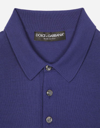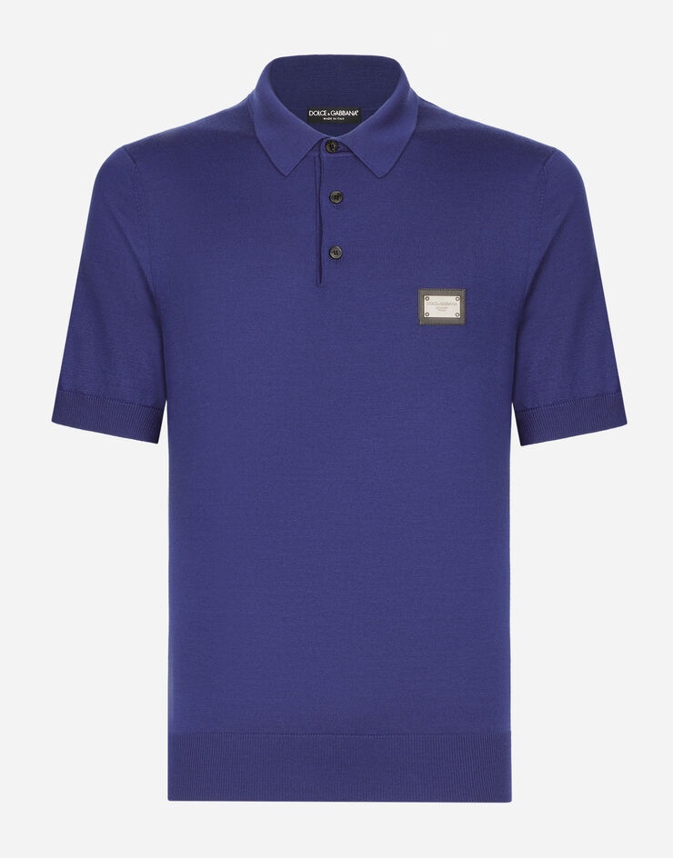 Wool polo-shirt with metal tag featuring the Dolce&Gabbana logo: • Blue •Regular fit •Button fastenings •Short sleeves •14-gauge plain knit •The piece measures 68 cm from the shoulder seam on a size IT 48 •The model is 185 cm tall and wears a size IT 48 •Made in Italy Care And Details External composition: 100% Wool