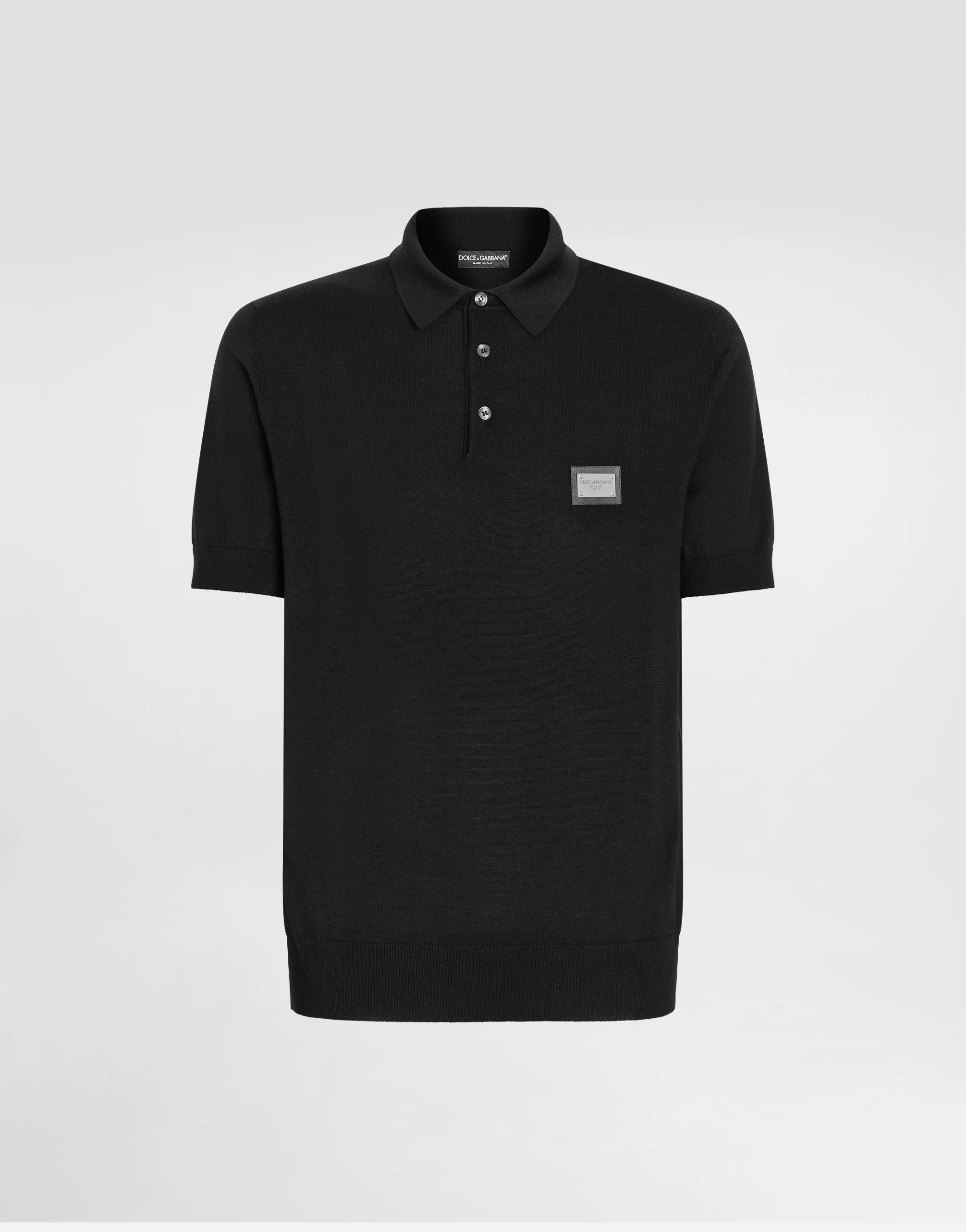 Wool polo-shirt with metal tag featuring the Dolce&Gabbana logo: • Regular fit • Button fastenings • Short sleeves • 14-gauge plain knit • The piece measures 68 cm from the shoulder seam on a size IT 48 • The model is 185 cm tall and wears a size IT 48 • Made in Italy Care And Details External composition: 100% Wool