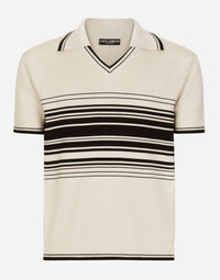 Wool polo-shirt with contrasting stripes