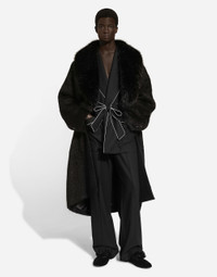 Contemporary men’s formalwear: The FW 24/25 Dolce&Gabbana Men’s Collection is embracing the concept of absolute elegance dominated by the iconic Nero Sicilia black. The daywear of the Dolce&Gabbana man comes to life through the outerwear that comes in a range of lengths and the slim-fit pants. For nightwear, the look becomes scintillating thanks to sequined embellishment and stone appliques. This refined taste can also be seen on the accessories, such as on the slip-ons with hand-applied organza flower accent and the new clutch. Wool robe with piping: • Black • Shawl lapels • Wrap fastening with belt • Front patch pockets • Lined • The piece measures 81 cm from the rear collar seam on a size IT 48 • Made in Italy External composition: 100% Virgin Wool Internal Composition: 100% Polyester