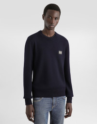 Wool round-neck sweater with metal tag featuring the Dolce&Gabbana logo: • Regular fit • 8-gauge plain knit • The piece measures 68 cm from the shoulder seam on a size IT 48 • The model is 185 cm tall and wears a size IT 48 • Made in Italy Care And Details External composition: 100% Wool