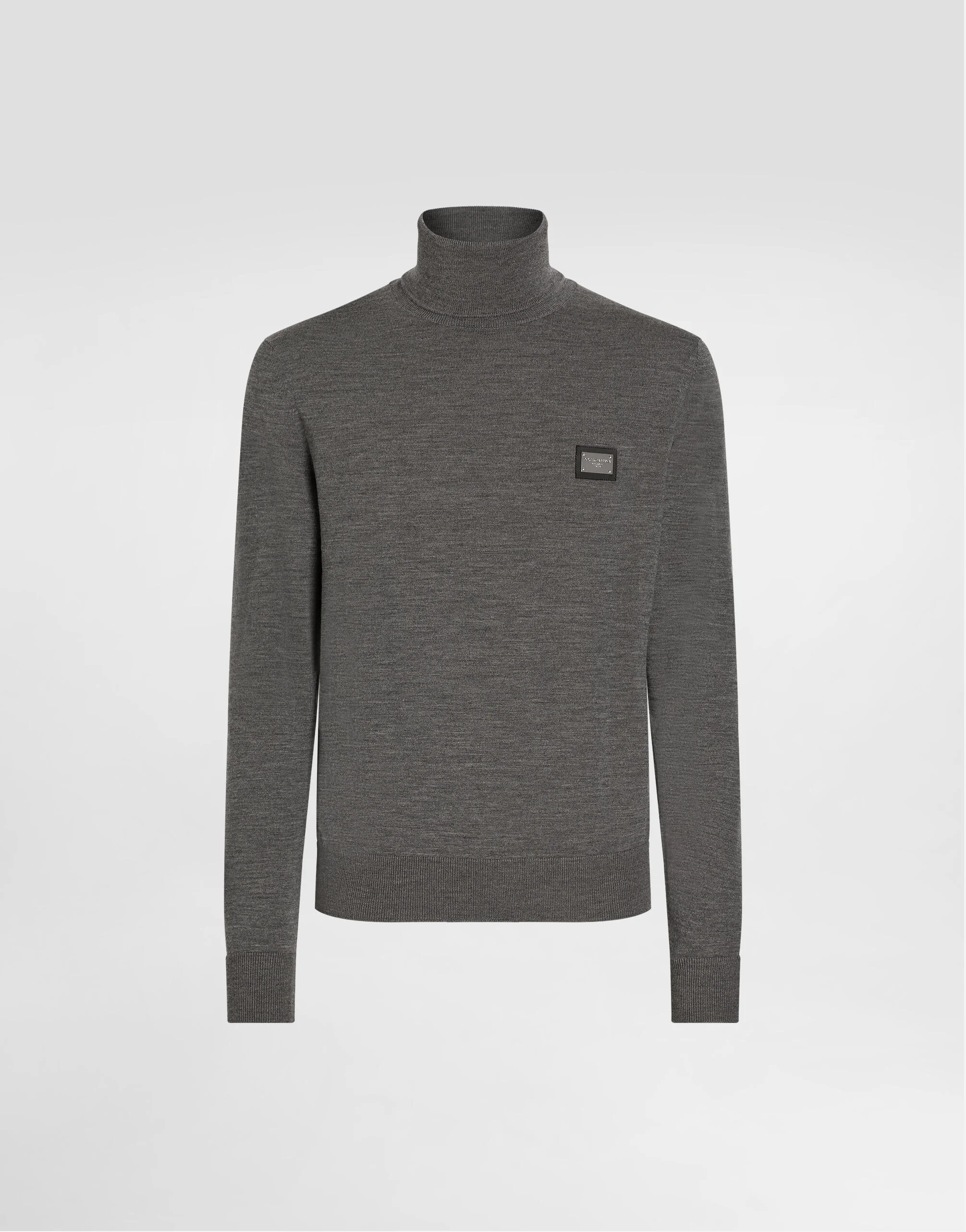 Turtle-neck wool sweater with metal tag featuring the Dolce&Gabbana logo: • Grey •Regular fit •14-gauge plain knit •The piece measures 68 cm from the shoulder seam on a size IT 48 •The model is 185 cm tall and wears a size IT 48 •Made in Italy Care And Details External composition: 100% Wool