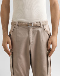 This belt without logo is characterized by a dense leather weave, perfect for those looking for an elegant and discreet accessory. Tightly woven goatskin belt: • Beige • Pole height 25 mm • Clip buckle • Ruthenium electroplating • Internal customization with fire stamp • Item equipped with logo bag and logoed box • Made in Italy External Composition: 100% Goatskin