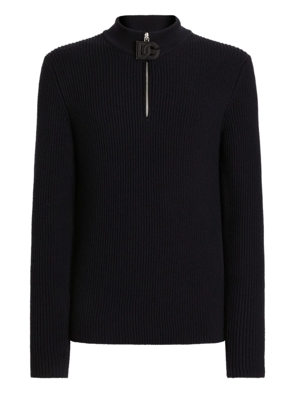 logo-detail sweater Highlights - Blue - Half zipper - Logo detail - Roll neck - Long sleeves - Rib-knit Made in Italy Composition Virgin Wool 100% Washing instructions Read Manufacturer Guidelines