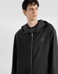 This wool jacket is a versatile and fashionable garment, perfect for the cold seasons thanks to its design and zip closure. Wool canvas hooded jacket: • Grey • With central zipper • Lined • The model is 185 cm tall and wears size 48 • Made in Italy External Composition: 40% Wool, 30% Polyester, 27% Polyamide, 3% Elastane