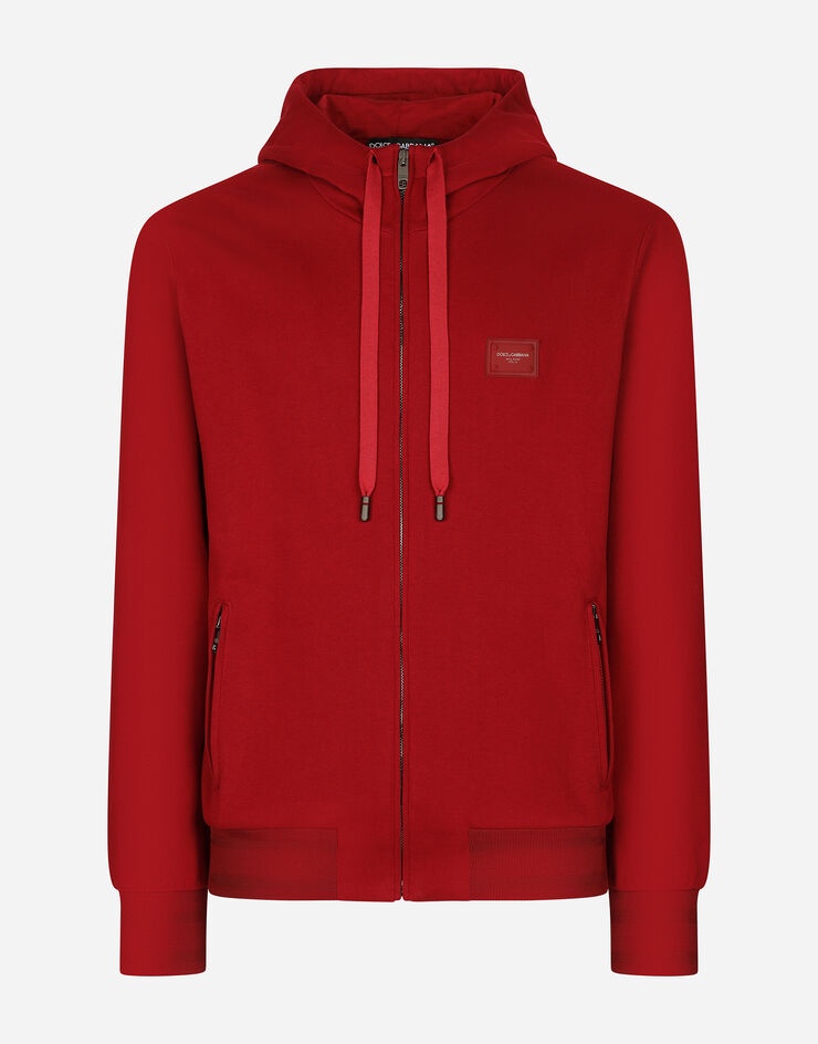 Jersey cotton zip-up hoodie enriched with a rubberized Dolce&Gabbana logo plaque • Regular fit • Hood wth drawstring and logoed aglets • Elasticated jersey bottom and wrists • The piece measures 72 cm - 28.3 inches from the rear collar seam on a size 48 IT • The model is 185 cm - 72.8 inches tall and wears a size 48 IT • Made in Italy Care And Details Composition: 100% Cotton