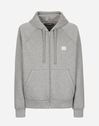 The Marina line has us dreaming of the Mediterranean sea and its myriad shades of blue, while also bringing weathered sailors to mind, yet with a contemporary edge. Aesthetic influences and clear lines, stormy sea blue jackets, multi-pocket pieces, waterproof garments, anchor prints and materials that invite us to discover the “lighthouse keeper”. Fascinating, enigmatic and at times lonely, it tells the tale of a new masculine sensuality built with small yet precise proportions and attention to stylish detail. Hoodie with drawstring: • Gray • Oversize fit • Zipper fastening • Tonal Dolce&Gabbana tag • Patch pockets on the front • Stretch knit hem and cuffs • Unlined • The piece measures 68.5 cm from the rear collar seam on a size IT 48 • Made in Italy External composition: 100% Viscose Internal composition: 100% Viscose