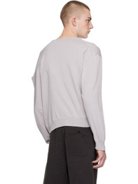 Knit cotton cardigan. · Asymmetrical construction · Rib knit crewneck, hem, and cuffs · Button closure · Patch pockets · Gathering at front hem · Cutout at shoulder for alternate styling This item is part of a limited run of 82. Supplier color: Grey