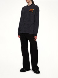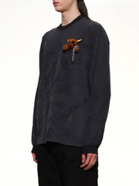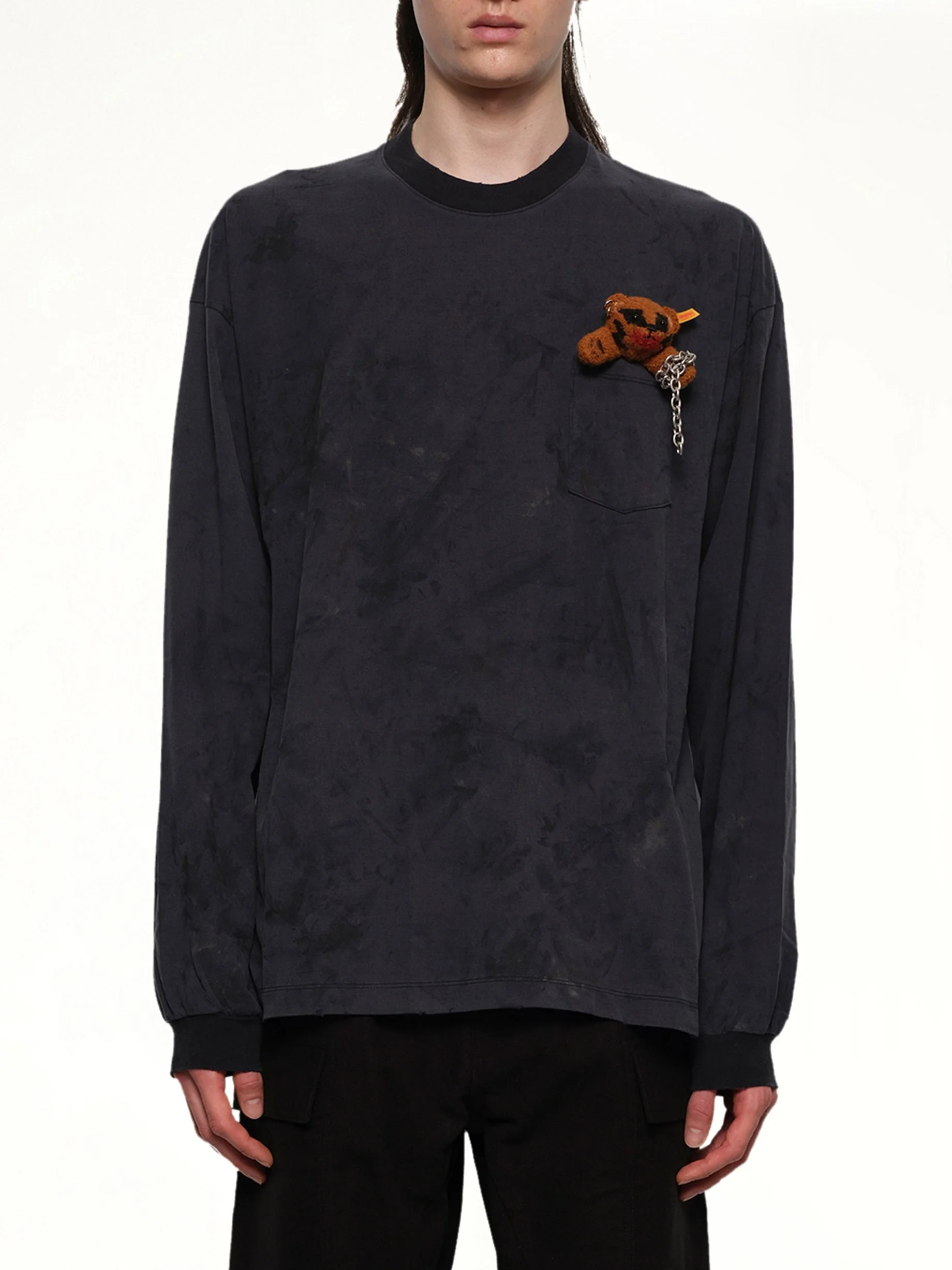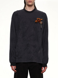Doublet's Long Sleeve T-Shirt With Villain Bear in Black is a unique and playful addition to any wardrobe. Featuring a bold graphic design, this shirt combines comfort with a touch of whimsy. - Composition: Cotton 100% - Features a striking Villain Bear graphic on the front - Classic black color for versatile styling - Long sleeves for added warmth and coverage - Relaxed fit for everyday comfort - Made in: nan Model is 187 cm and wears size M SKU: 25AW39CS402 BK