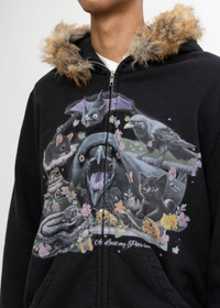 BLACK DOUBLET FURRY COLLAR ZIP-UP HOODIE