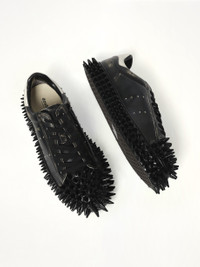 Doublet's Spiky Leather Sneaker in Black is a bold and edgy footwear choice that combines unique design with everyday functionality. These sneakers are perfect for those looking to make a statement with their footwear. - Composition: Upper: Cowhide, Sole: Rubber - Features distinctive spiky embellishments for a standout look. - Crafted with a sleek black leather finish. - Designed for comfort with a cushioned insole. - Durable rubber sole for reliable traction. - Lace-up closure for a secure fit. - Made in: nan SKU: 25AW76FT63 BK