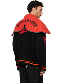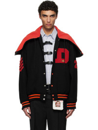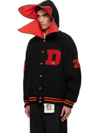 Black & Red Petal Mouth Hood Varsity Bomber Jacket