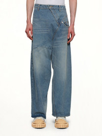 Doublet's Distorted Cutting Denim Pants in Indigo is a unique take on classic denim, featuring an avant-garde design that challenges traditional silhouettes. These pants offer a bold statement with their unconventional cut and striking indigo hue. - Composition: Cotton 100% - Avant-garde distorted cutting design - Striking indigo color - Unique silhouette for a bold statement - Classic denim with a modern twist - Made in: nan Model is 187 cm and wears size M SKU: 25AW24PT323 IN