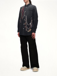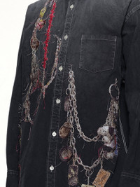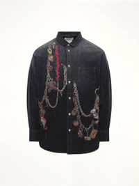 Doublet's Embroidered Chain Shirt in Grey is a unique blend of traditional craftsmanship and modern style. This shirt offers a distinctive look with its intricate embroidery and chain detailing. - Composition: Cotton 100% - Color: Grey - Features intricate embroidery - Chain detailing for added style - Modern fit with a classic touch - Suitable for both casual and formal occasions - Made in: nan Model is 187 cm and wears size M SKU: 25AW42SH162 GR