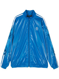 embroidered zip-up jacket Highlights - Aqua blue - High-shine finish - Embroidered design - Side stripe detailing - Embroidered logo at the chest - Mock neck - Front zip fastening - Drop shoulder - Long sleeves - Two side welt pockets - Elasticated trim - Straight hem Imported Composition Outer: Polyester 100% Lining: Polyester 100%