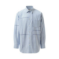 Made with precision cutting techniques, this shirt boasts a unique and modern design. The blue and white color combo adds a touch of sophistication, making it perfect for both casual and formal occasions. - Composition: 100% Cotton - Front button closure - Long sleeve - All over stitching - Front chest pocket - Screw attachment on the collar - Made in Japan Model is 192 cm and wears size M SKU: 24AW23SH152 BLWH