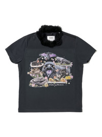 furry-collar graphic-print T-shirt Highlights - Black - Faux-fur collar - Central graphic print - Short sleeves - Zip fastening Imported Composition Cotton 100%, Acrylic 100% Washing instructions Read Manufacturer Guidelines