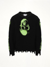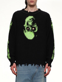 Doublet's Glow-In-The-Dark Skull Knit Pullover in Black is a striking piece that combines edgy style with unique functionality. Perfect for making a statement, this pullover features a glow-in-the-dark skull design that stands out in any setting. - Composition: Wool 100% - Glow-in-the-dark skull graphic - Classic black color - Comfortable knit fabric - Long sleeves for added warmth - Ribbed cuffs and hem - Made in: nan Model is 187 cm and wears size M SKU: 25AW66KN199 BK