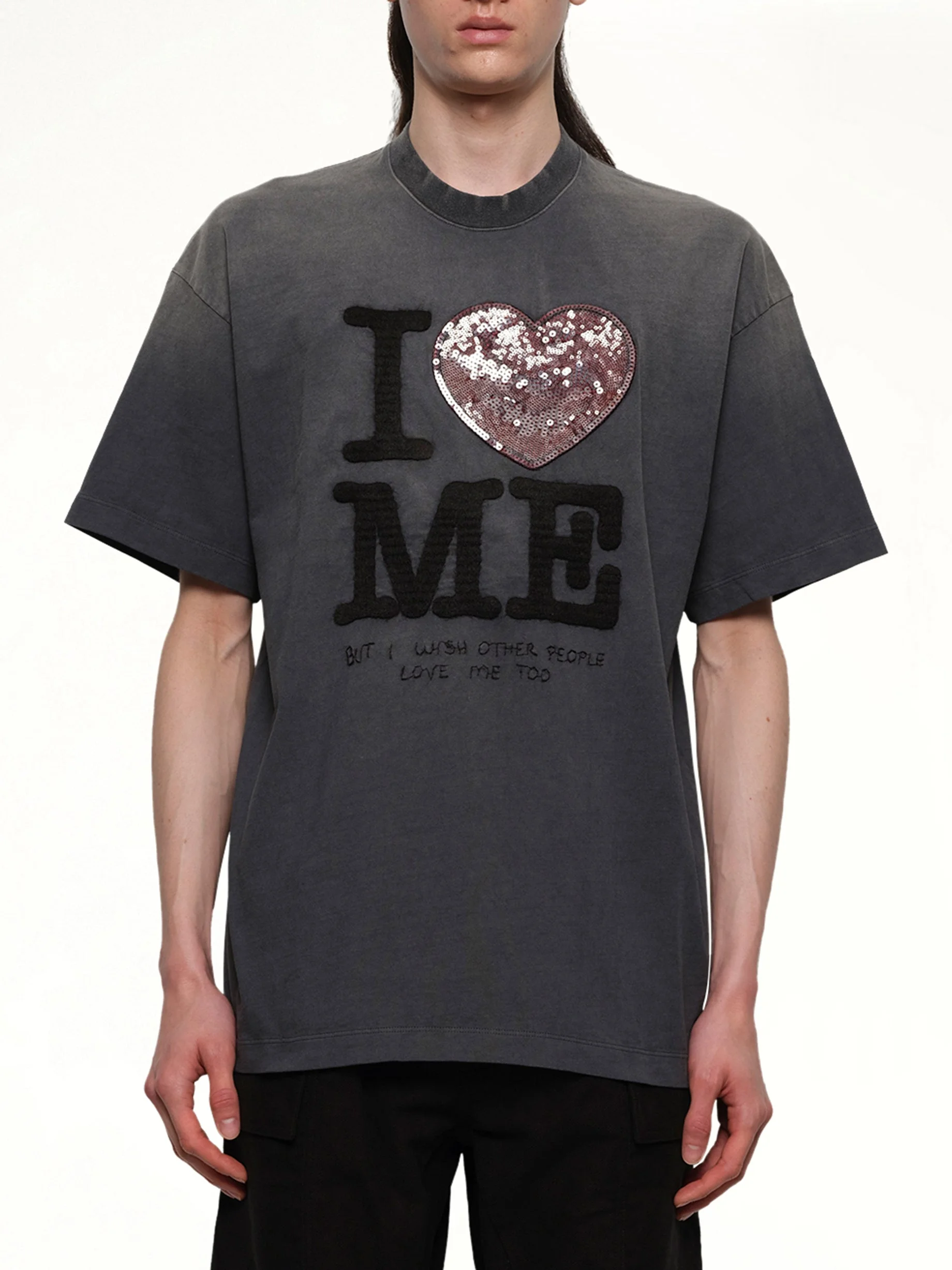 Doublet's Grip-Love T-Shirt in Black is a unique and stylish piece that combines contemporary design with a playful twist. Perfect for casual outings, this t-shirt adds a touch of personality to any wardrobe. - Composition: Cotton 100% - Features a bold graphic print on the front - Relaxed fit for comfortable wear - Ribbed crew neckline - Short sleeves for a classic look - Versatile black color - Made in: nan Model is 187 cm and wears size M SKU: 25AW51CS401 BK