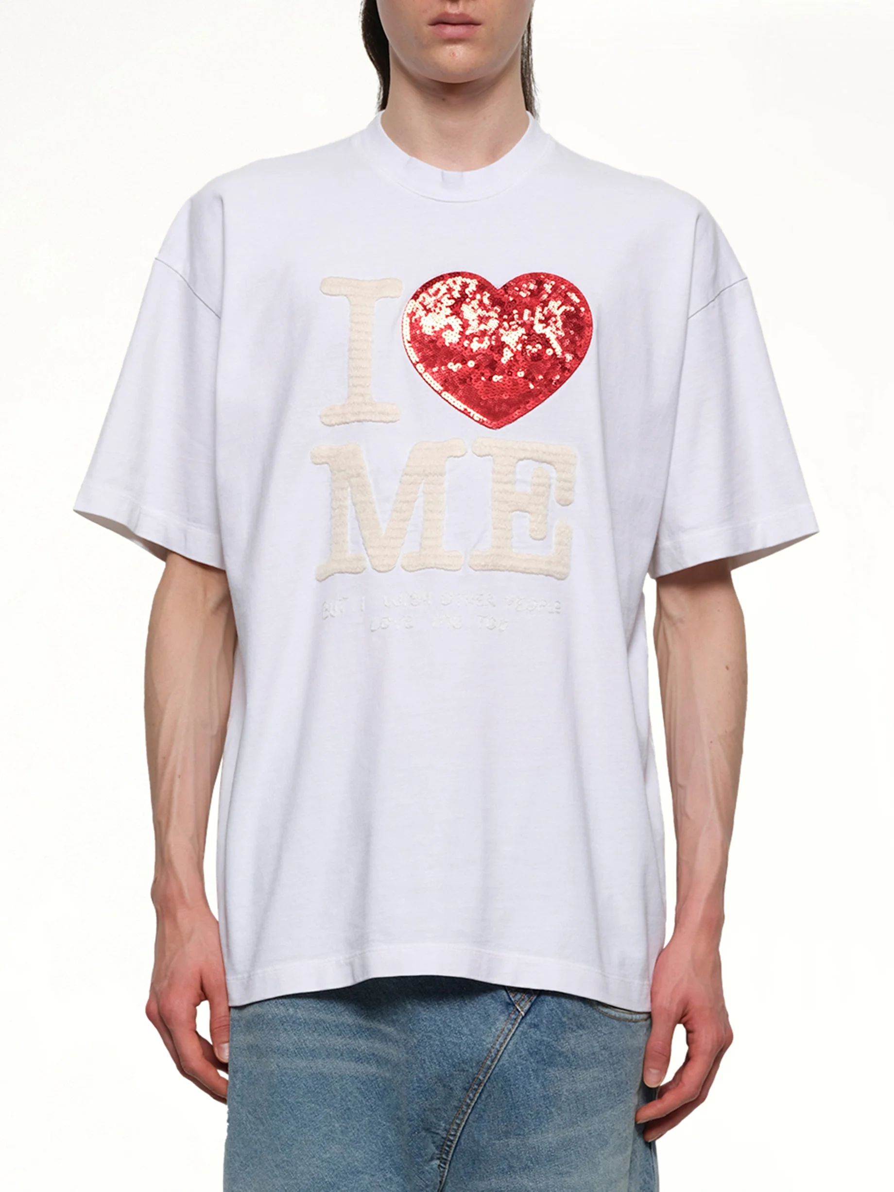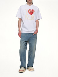 Doublet's Grip-Love T-Shirt in White is a unique and stylish piece that combines contemporary design with a playful twist. Perfect for casual outings, this t-shirt adds a touch of whimsy to any wardrobe. - Composition: Cotton 100% - Features a bold graphic print on the front - Relaxed fit for comfortable wear - Ribbed crew neckline - Short sleeves - Versatile white color - Made in: nan Model is 187 cm and wears size M SKU: 25AW51CS401 WH