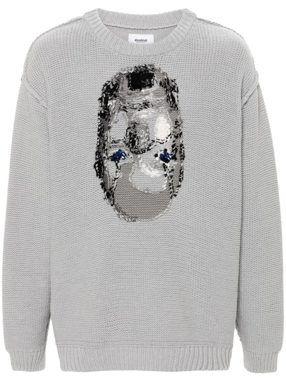 inside-out jacquard jumper Highlights - Grey - Cotton blend - Knitted construction - Jacquard - Inside-out effect seams - Crew neck - Drop shoulder - Long sleeves - Ribbed cuffs and hem - Straight hem Imported Composition Cotton 60%, Acrylic 40% SIZE & FIT Model measurements Height 6 ft 2 in(1.88 m) Bust/Chest 35.03 in(89 cm) Hips 35.82 in(91 cm) Waist 27.95 in(71 cm) FittingInformation Designed to be unstructured, offering a loose fit throughout Made with a midweight knit, this piece offers some stretch This piece fits true to size – take your usual size