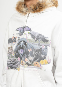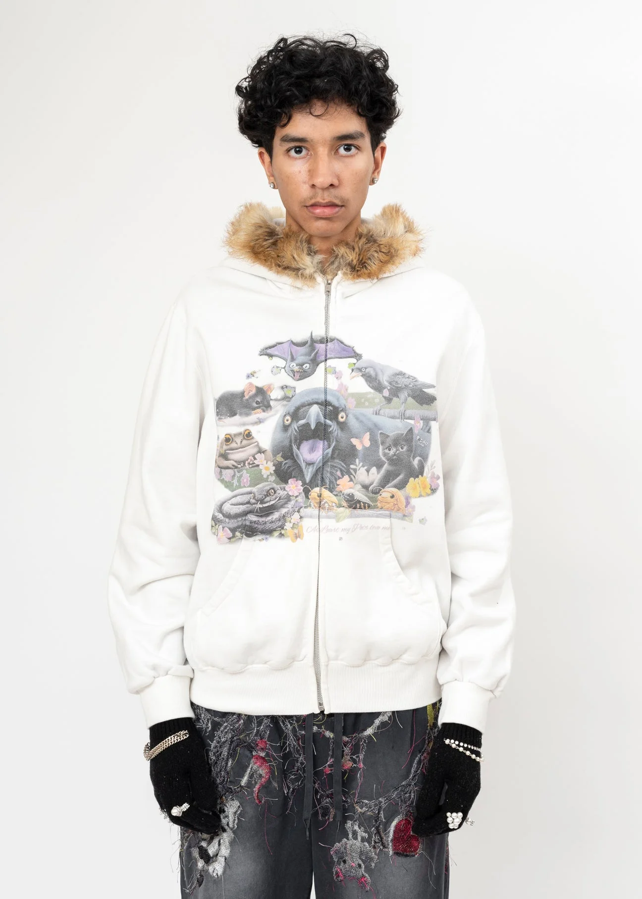 IVORY DOUBLET FURRY COLLAR ZIP-UP HOODIE