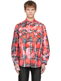 Polyester and nylon-blend moire shirt. Graphic and check pattern printed throughout. · Spread collar · Button closure · Flap pockets · Shirttail hem · Single-button barrel cuffs Supplier color: Red 73% polyester, 27% nylon. Made in Japan 231038M192004